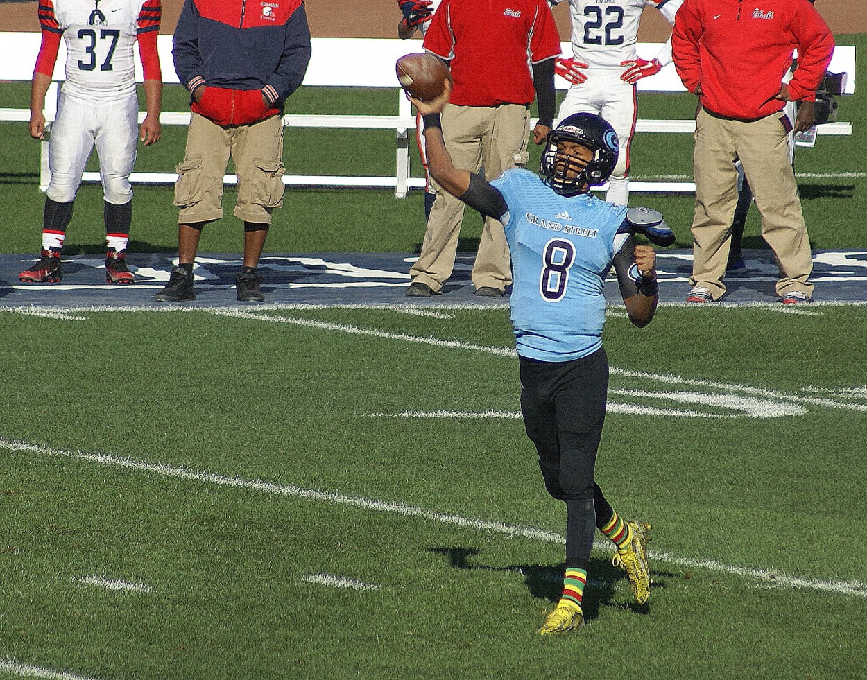 Grand Street Campus QB Sharif Harris-Legree – Bronx, NY – 12-6-15 Published 12/06/2015 at 1250 × 981 in SONY DSC Share this:ShareTwitter